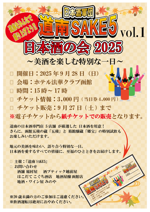 お問合せ:純米酒函館応援団 0138-51-3939(山形) ←フェイスブックページ